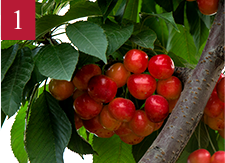 With a special pruning on the cultivation stage, the proper exposure of cherries in the sunlight enhances the cherries' color and sweetness.
